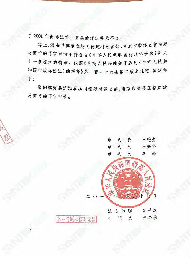 【重要声明】认准“中文【91视频色版下载】“商标!谨防假冒!最高人民法院对-原南京91视频色版下载新型建材有限公司-股东沈静波先生抢注的“91视频色版下载库商标”裁定撤销!